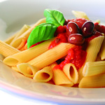 Makkaroni, Hähnchenfleisch, Champignons,Tomatensahnesauce |